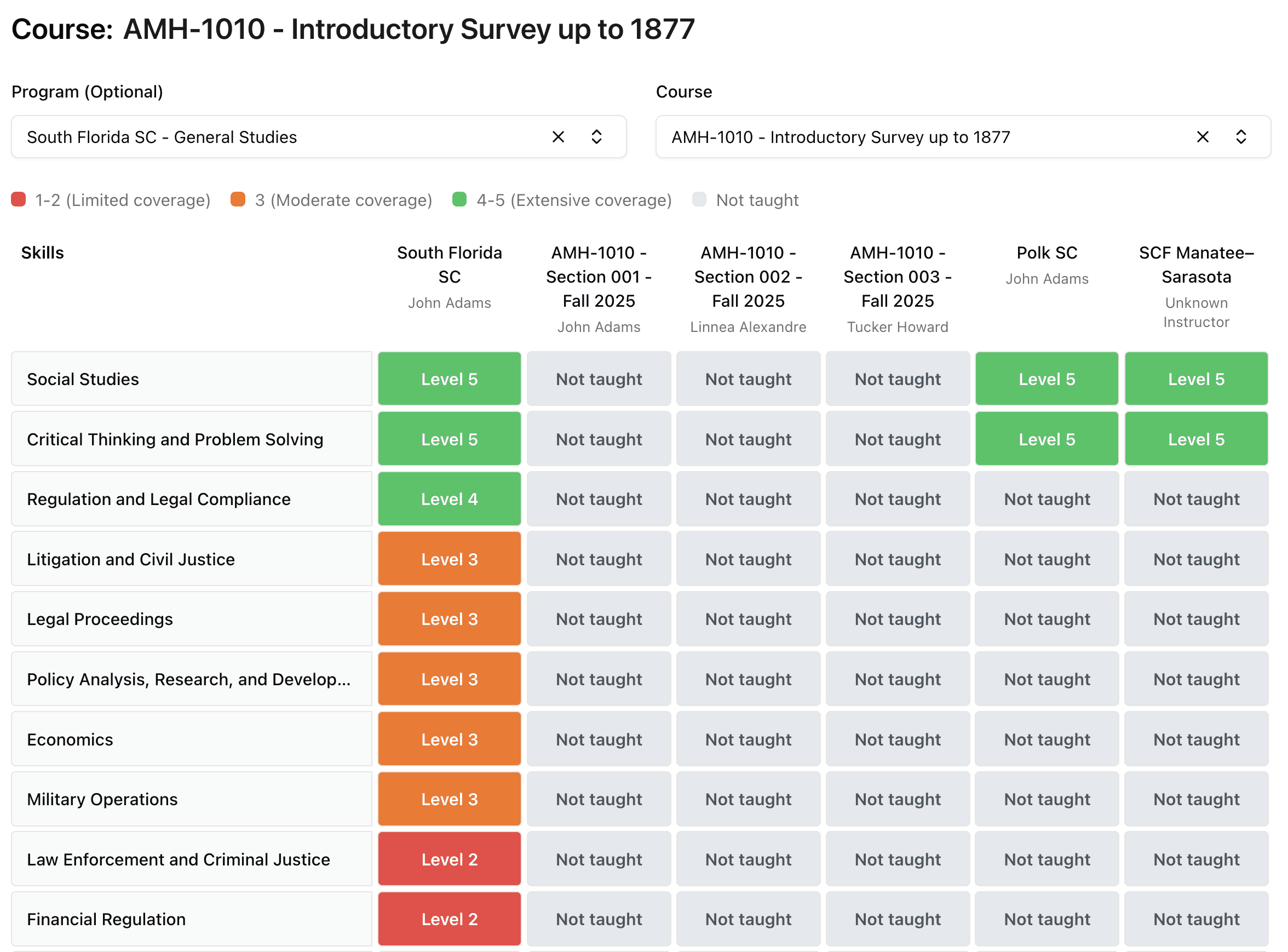 Move beyond generic reporting. Mapademics analyzes courses and programs by the skills they deliver, giving leaders a common lens for comparison and planning.